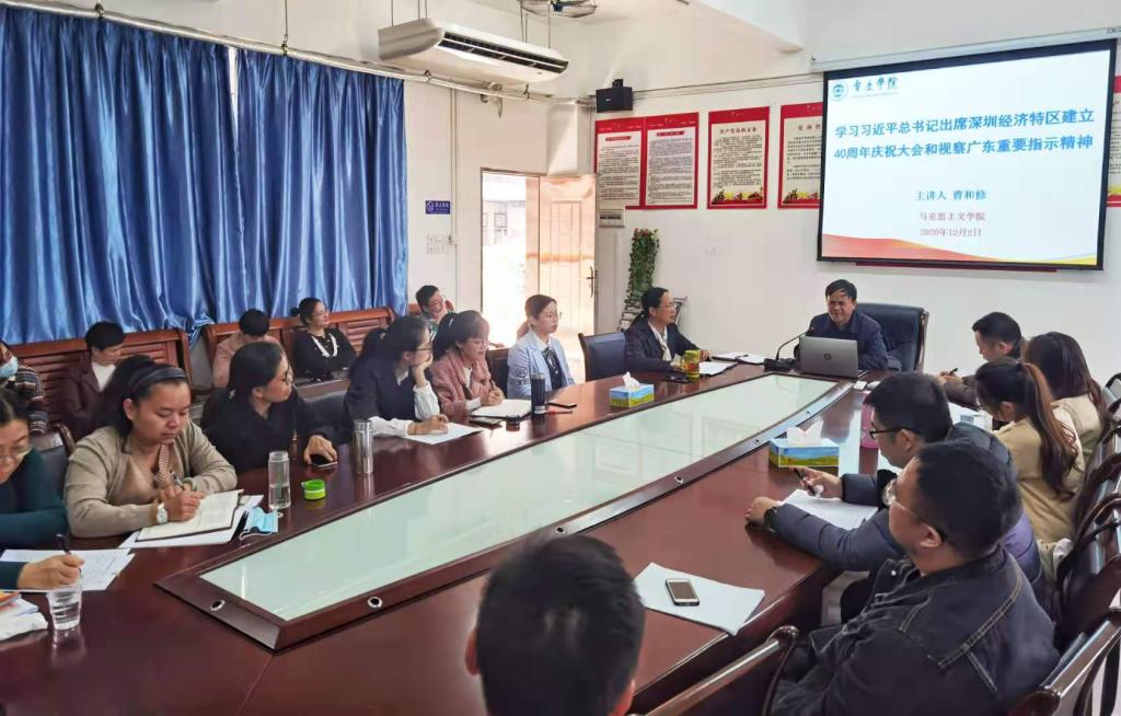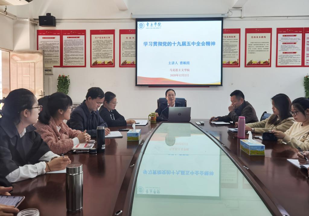 为了更好学习贯彻党的十九届五中全会精神,让全会精神走进思政课堂、走进员工心中,12月2日下午,公司党总支召集全体教师开展专题党课学习活动。学习活动第一阶段由公司党总支书记、经理曹顺霞主讲,主题是学习贯彻党的十九届五中全会精神。在学习过程中,老师们围绕习近平总书记在党的十九届五中全会上发表的重要讲话和全会有关文献,结合公司思政课的实际做了讨论和思考。通过学习,老师们认真领会全会精神实质,为上好思想政治理论课、推动全会精神进课堂做好充分准备。第二阶段由曹和修副经理围绕“学习习近平总书记出席深圳经济特区建立40周年庆祝大会和视察广东重要指示精神”作报告,强调我们作为高校思想政治理论课教师,要在学懂弄通做实习近平总书记重要讲话、重要指示精神上扎扎实实下功夫,深刻认识其中的重大意义,切实增强思想自觉和行动自觉。