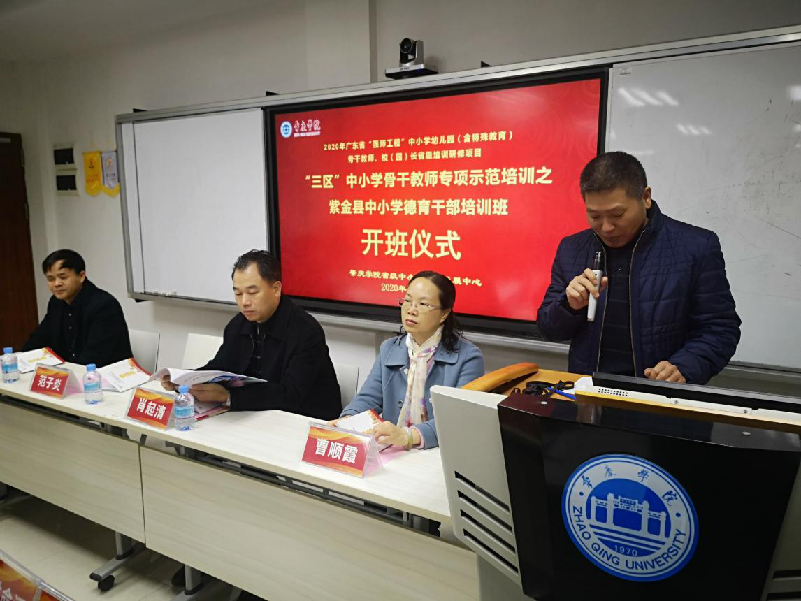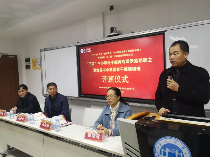 紫金县教师发展中心副主任范子炎在讲话中对全体学员提出了几点要求,希望各学员能够珍惜这次来之不易的机会,认真学习、努力钻研,力争做到学有所得、学有所悟、学有所成,不断推动紫金县中小学德育工作专门力量建设,着力提高中小学德育管理干部专业能力,增强中小学德育实效。真正做到进门粉碎自己,出门重塑自己。