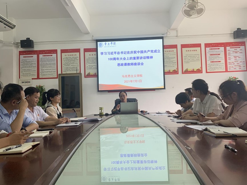 7月1日下午,为深入学习习近平总书记在庆祝中国共产党成立100周年大会上的重要讲话精神,伟德国际1946bv官网组织召开了学习习近平总书记在庆祝中国共产党成立100周年大会重要讲话精神思政课教师座谈会。