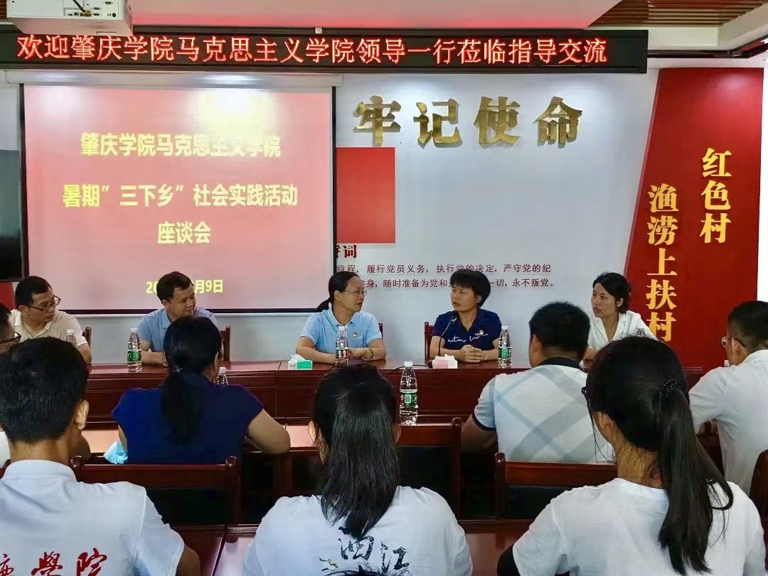 7月9日上午,伟德国际1946bv官网经理曹顺霞、副经理曹和修一行7人到封开县渔涝镇上扶村与该镇人民政府及上扶村村委召开“三下乡”社会实践活动座谈会。会议由渔涝镇人民政府组织委员陈校民主持,社会实践团指导老师和全体队员参加。