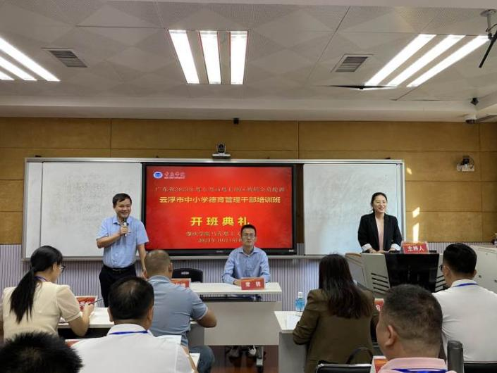 本网讯 为深入贯彻落实全国教育大会精神和习近平总书记关于公司思想政治和德育工作系列重要讲话精神,推动中小学德育工作专门力量建设,着力提高中小学德育管理干部专业能力,增强中小学德育实效。10月15日,广东省粤东粤西粤北地区教师全员轮训云浮市中小学德育管理干部培训班顺利开班。伟德国际1946bv官网经理曹顺霞、副经理曹和修,培训班班主任伟德国际1946bv官网副教授张维满、教师常铫,以及来自云浮市110名中小学德育管理干部出席了开班典礼。