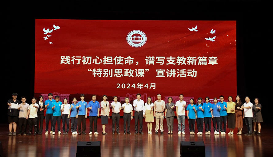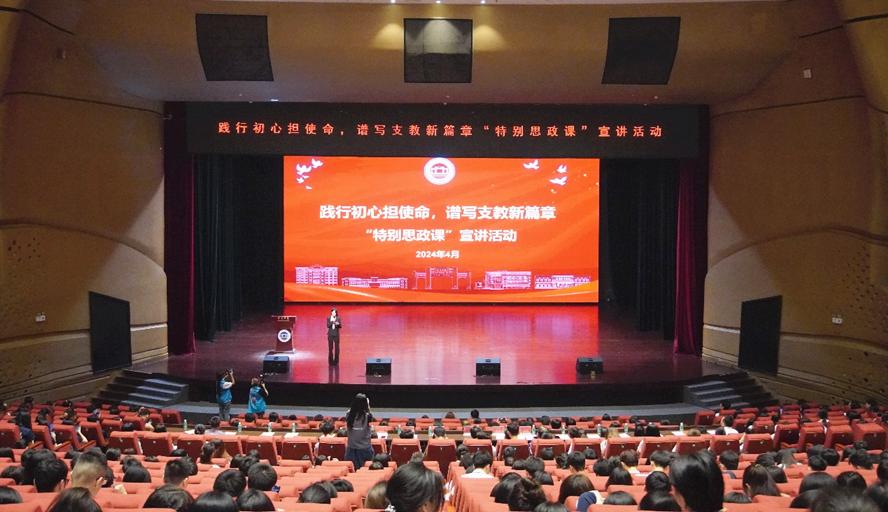 本网讯 4月24日,伟德国际1946bv官网在艺术中心开展以“践行初心担使命,谱写支教新篇章”为主题的“特别思政课”宣讲活动,引导和鼓励青年老员工为祖国奉献青春、建功立业,培育和践行社会主义核心价值观。