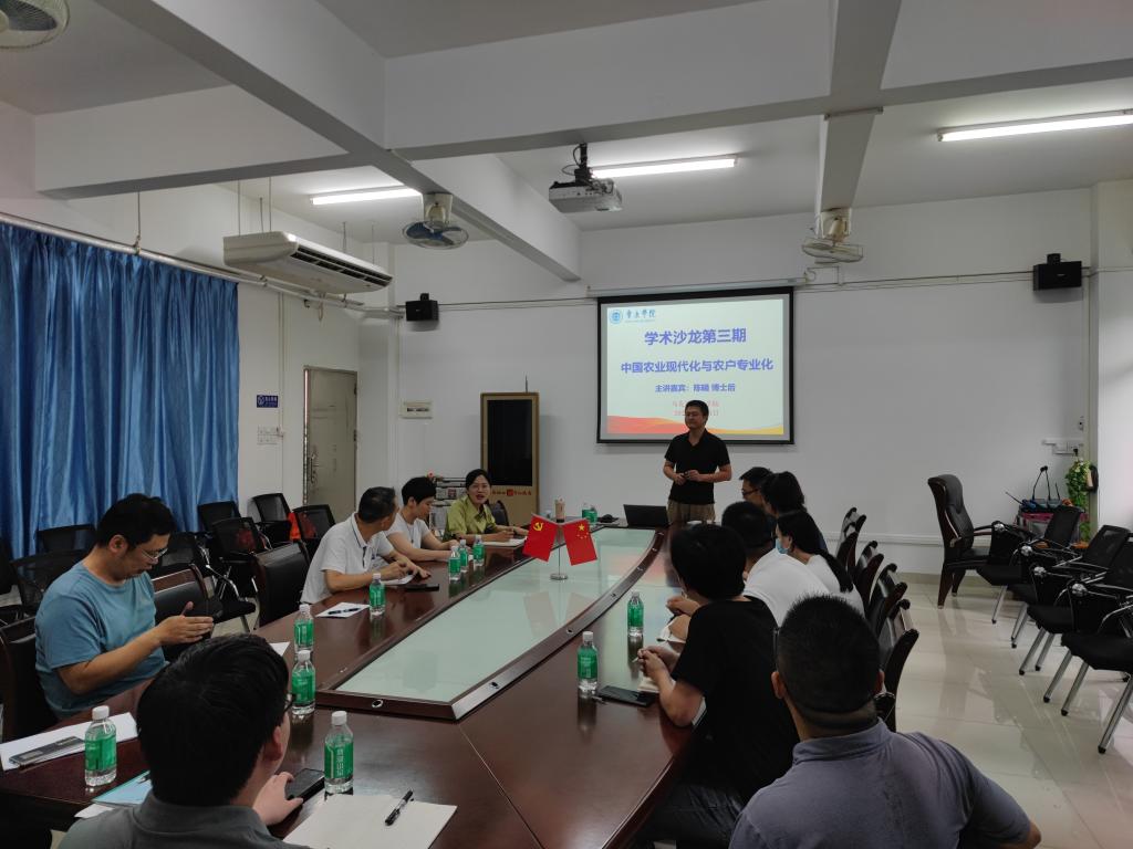 本网讯 为了活跃公司学术氛围,促进学科交叉、交流和发展,6月14日,伟德国际1946bv官网第三期学术沙龙在三教317会议室开讲。本次学术沙龙由陈曦博士后担任主讲嘉宾,主题是“中国农业现代化与农户专业化”。公司部分教师参加,副经理林润燕主持。