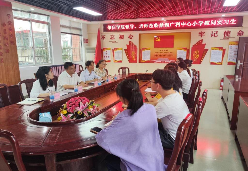 曹和修一行先后前往了鼎湖第一实验公司(小学部)、鼎湖第一实验公司(初中部)、鼎湖区广利高级中学、鼎湖区广利中心小学、鼎湖区吴大猷公司、鼎湖区新区中心小学等公司单位。期间,曹和修一行与实习公司负责领导、实习带教老师、实习员工开展座谈会。