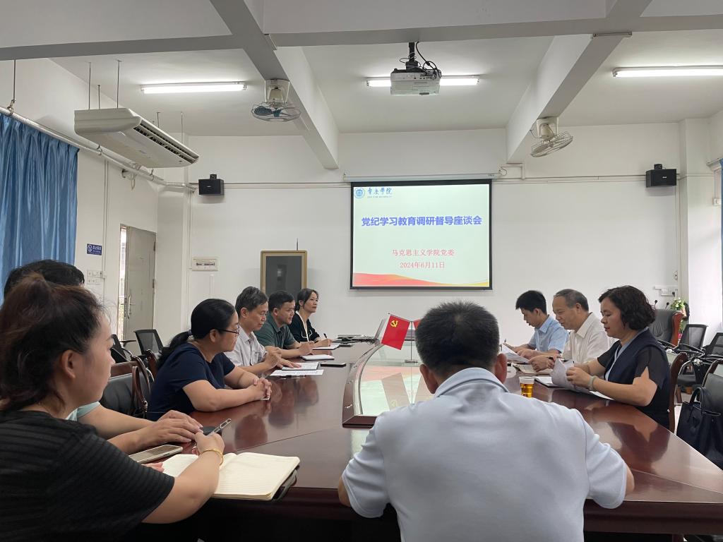 本网讯 6月11日,公司党纪学习教育工作督导组成员、公司党委委员、组织部部长兼党政办公室主任谭冠中、校宣传统战部副部长曾丹凤、组织部副科级专职组织员蔡树培到公司开展党纪学习教育督导调研。公司党委书记侯玉基、经理曹和修、副书记杜志欣及办公室主任、各教学部主任、专职组织员参加座谈交流。