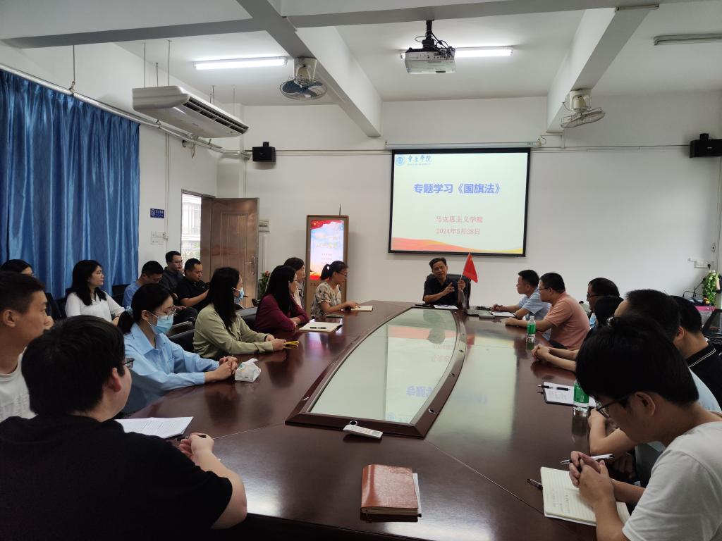 通过组织全院教职工开展专题学习会,党委书记侯玉基在会上带领全体教职工深入学习了《国旗法》的相关内容和精神实质,包括《国旗法》的重要意义、立法背景与目的、具体条例以及国旗的图案、色彩、象征意义、使用场合等方面内容。侯玉基强调了国旗作为国家的象征和标志,其尊严不容侵犯,并号召大家要切实增强对国旗及《国旗法》的认识,认真遵守《国旗法》的各项规定,以实际行动尊重、崇尚和维护国旗的尊严。教职工们在会上积极发言,分享了对国旗法的理解和认识,表达了维护国旗尊严的决心。