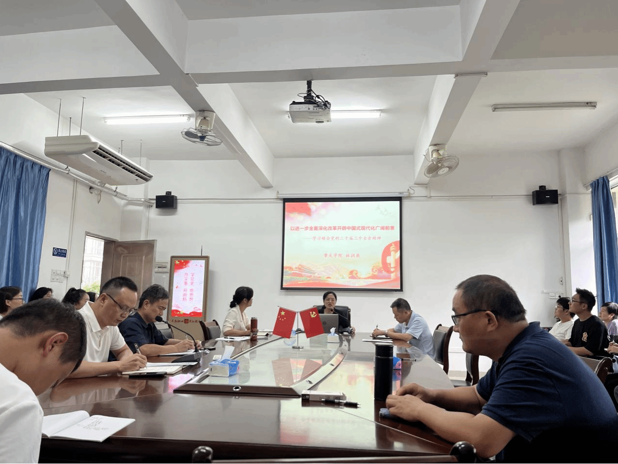 在备课会上,林润燕博士围绕国内专题——党的二十届三中全会精神,谢石生博士围绕国际专题——中国伙伴关系战略解析,向全体老师汇报。通过两位博士的汇报和详细讲解,大家了解了本学期“形势与政策”课的教学目的、教学内容、重点难点、教学注重事项等。老师们还就国内国际两个专题的相关问题进行了交流和探讨。接下来,各位老师将在国庆假期结合任教班级的实际情况,进一步开展个人备课,为第7周开始的“形势与政策”课做好准备。