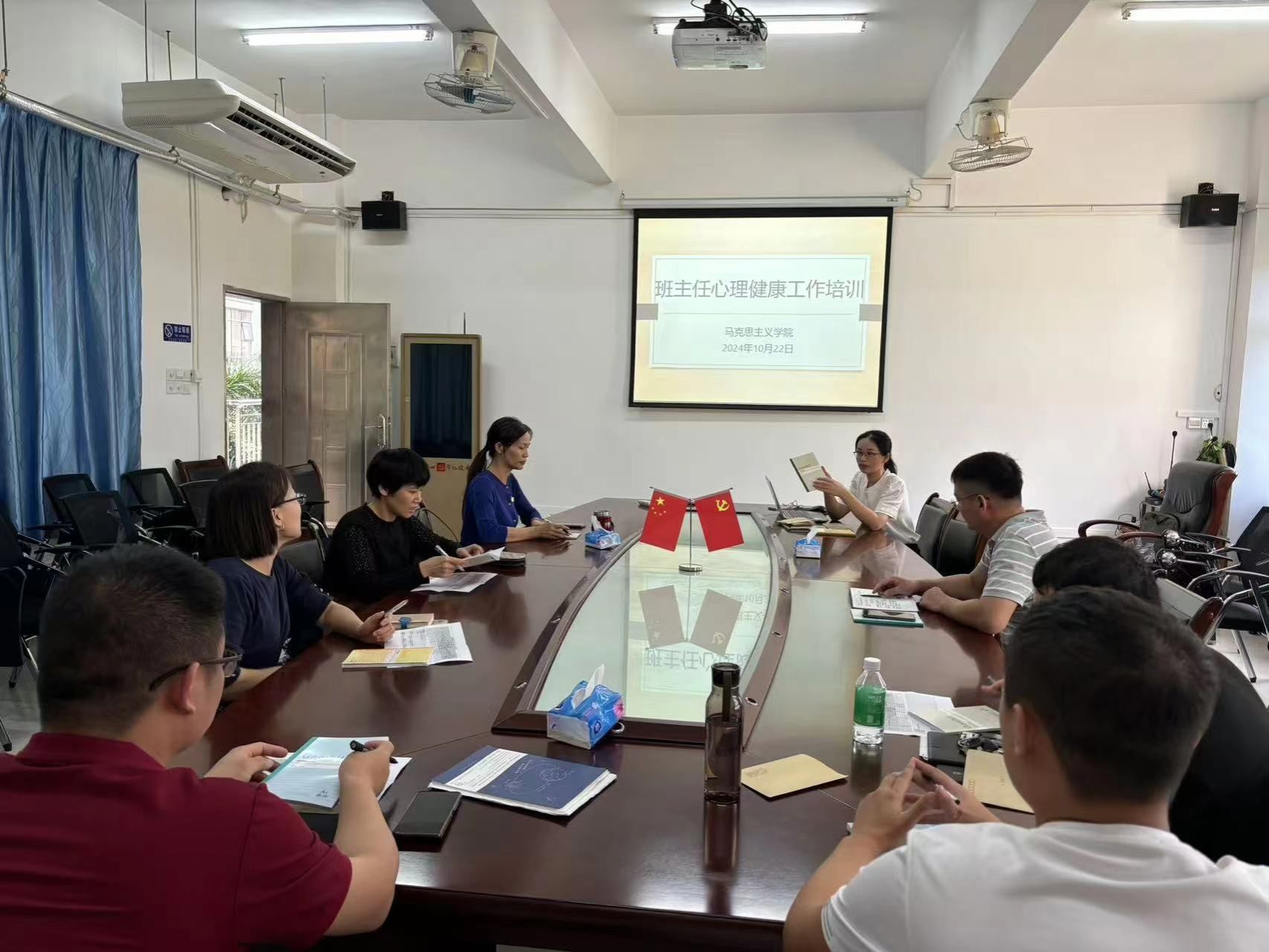 本网讯 为进一步提升班主任的日常谈心谈话工作能力,加强老师与员工之间的沟通,更好地了解员工所需,做好日常心理健康教育工作,10月22日,公司举行了班主任心理健康工作培训,公司党委副书记杜志欣、公司心理辅导站站长唐艳秋和全体班主任参加。