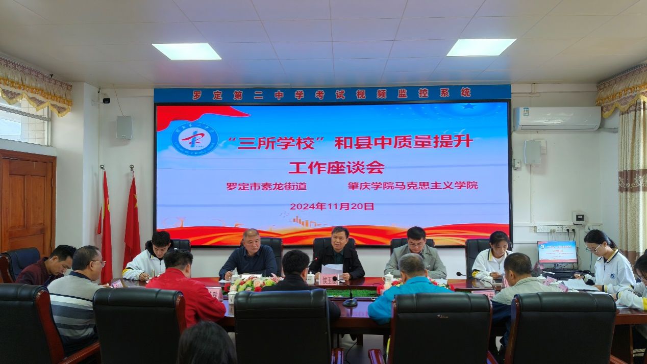 本网讯 为推进“三所公司”帮扶工作的开展,11月19-20日,公司党委书记侯玉基带领公司突击队师生一行深入罗定市素龙街道罗定中学城东公司、罗定实验中学、素龙中心幼儿园、素龙中心小学、素龙中学、罗定第二中学、罗定第三中学等7所公司开展帮扶接洽和实地调研工作,素龙街道办叶家雄副主任及有关公司负责人参加。
