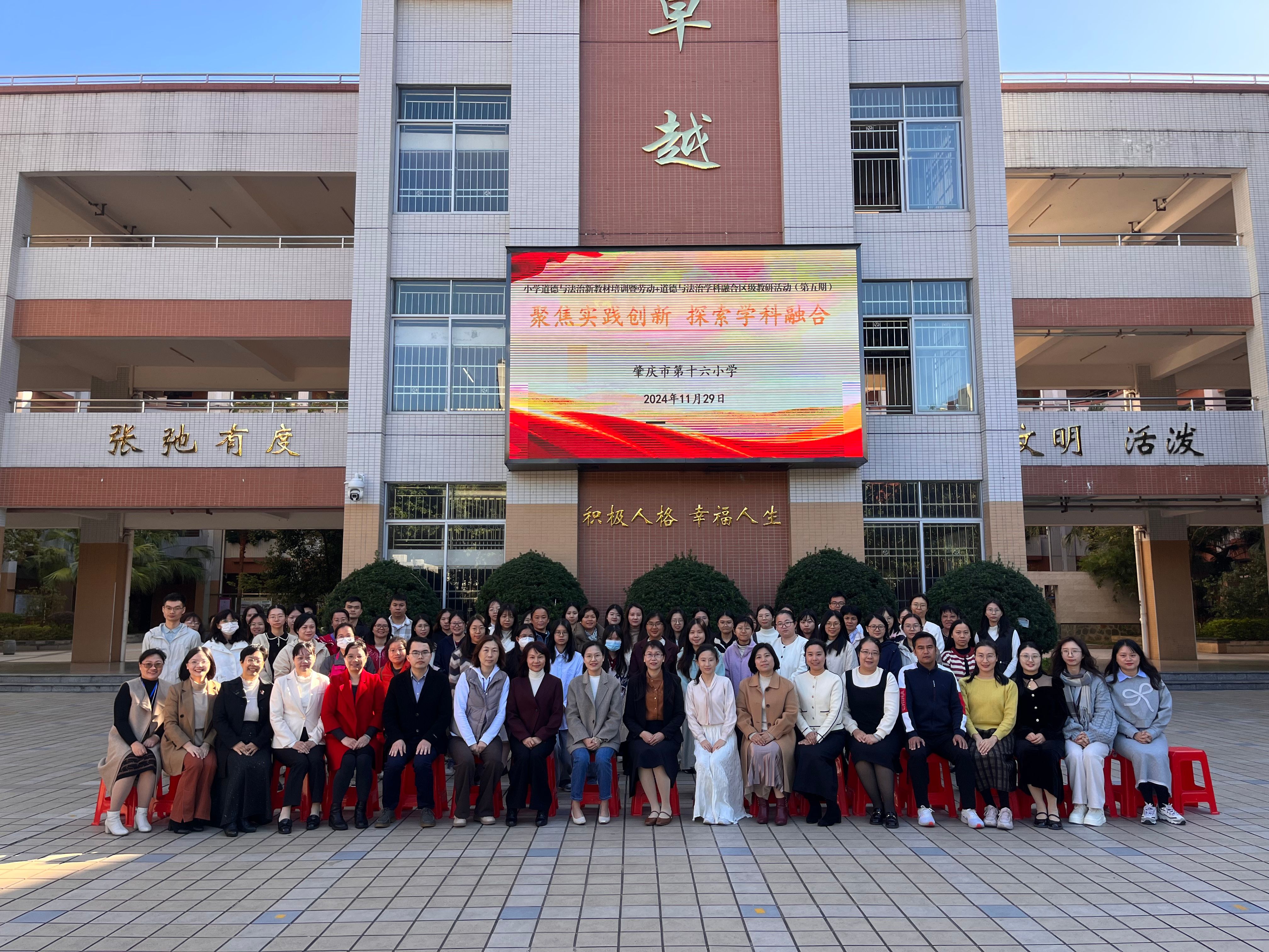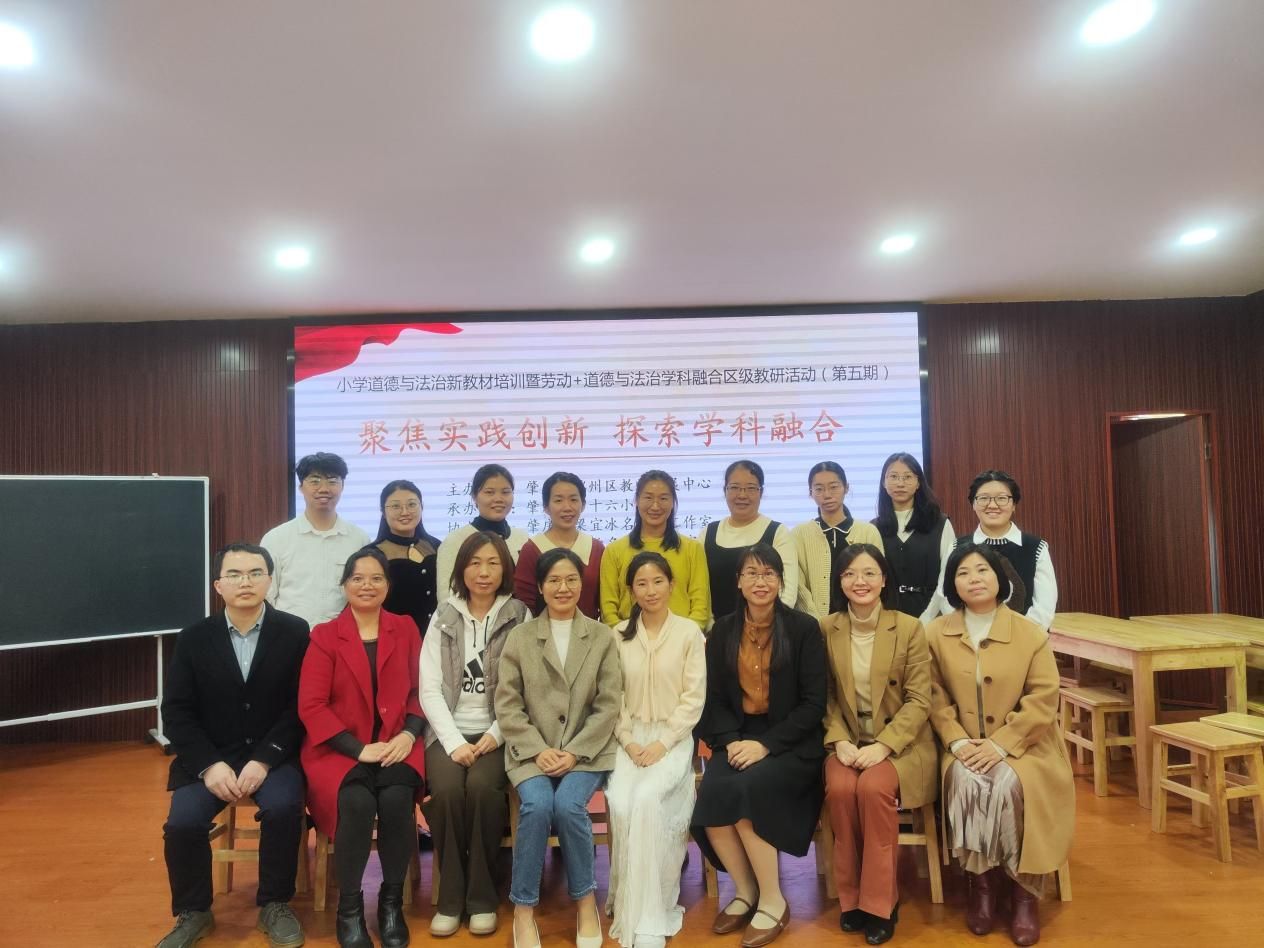 11月29日,伟德国际1946bv官网副经理林润燕带领惠珍、黎锐楷等思政课骨干教师前往肇庆市第十六小学(明月校区),出席“小学道德与法治新教材培训暨劳动+道德与法治学科融合区级教研活动(第五期)”,开展听评课和相关交流活动。