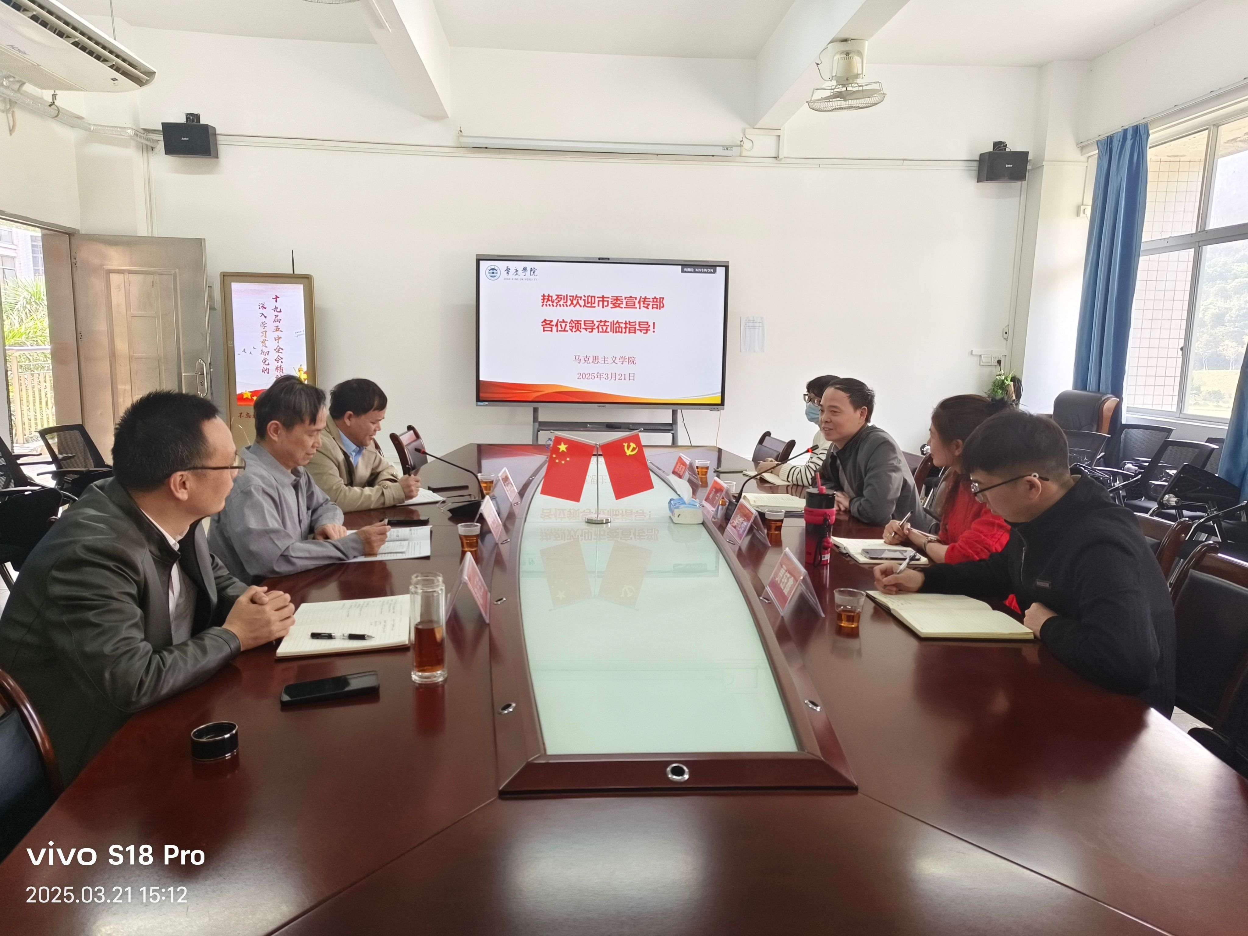 本网讯 2025年3月21日下午,肇庆市委宣传部理论科科长、研究室主任龚宁一行4人,到伟德国际1946bv官网就思政课建设、理论研究和宣讲等工作开展调研。公司党委书记侯玉基、经理曹和修、副经理谢石生参加调研座谈会。