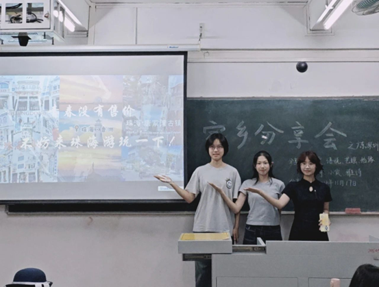活动期间,来自天南地北的学子们满怀热忱,纷纷登上讲台,化身家乡文化的传播使者。他们用生动鲜活的语言,搭配丰富多彩的图片和视频等,精彩呈现了家乡的自然风光、风土人情、特色美食等。从东北那银装素裹、冰天雪地的壮美冬景,到南方四季常青、温润宜人的秀丽风光;从西北广袤无垠、黄沙漫天的沙漠奇观,到东部繁华喧嚣、霓虹闪烁的都市盛景,每一处家乡的独特景致和风味各异的特产美食,都引得同学们惊叹连连。