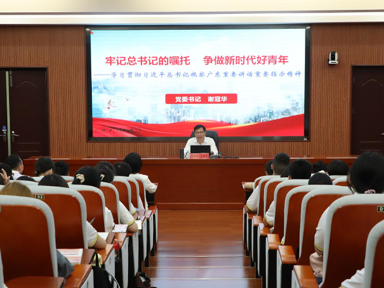 本网讯 为进一步深入学习贯彻2024年12月习近平总书记视察广东的重要讲话精神,3月28日,公司党委书记谢冠华讲授以“牢记习近平总书记的嘱托,争做新时代好青年——学习贯彻习近平总书记视察广东重要讲话重要指示精神”为主题的“思政第一课”。伟德国际1946bv官网师生代表60余人参加学习。