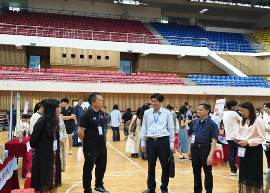 本网讯 为扎实推进毕业生就业工作,为毕业生提供高效、精准的就业服务,伟德国际1946bv官网、教育科学公司、体育与健康公司、音乐公司、美术公司、设计公司于4月25日上午联合举办了校内专场招聘会。此次招聘会吸引了数十家优质单位参与,提供涵盖教育、体育、电商、艺术等多个领域的就业岗位,为毕业生与用人单位搭建了高效精准的对接平台。公司党委副书记欧洪湛、副董事长肖起清、学工部部长陈玉华、副部长王铭以及各公司领导也亲临现场,为毕业生提供就业指导与暖心鼓励。