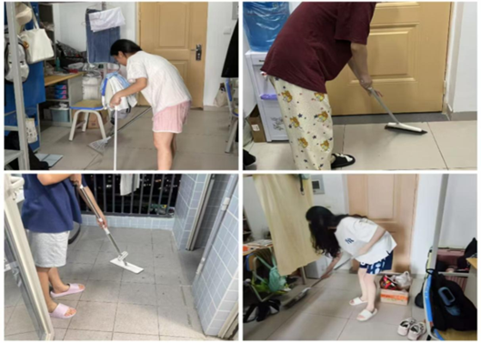 在清洁过程中,各宿舍成员积极配合,分工协作。大家手持扫帚、拖把、抹布等清洁工具,对宿舍地面、门窗、床铺、书桌等进行了全方位清扫。有的同学仔细擦拭窗台、书架,不放过任何一处灰尘;有的同学将堆积的杂物分类整理,让宿舍空间更加宽敞整洁;还有的同学对卫生间、洗漱台进行深度清洁,去除顽固污渍,确保卫生死角得到彻底清理。同时开窗通风,保持空气流通,有效降低细菌、病毒滋生与传播的风险。