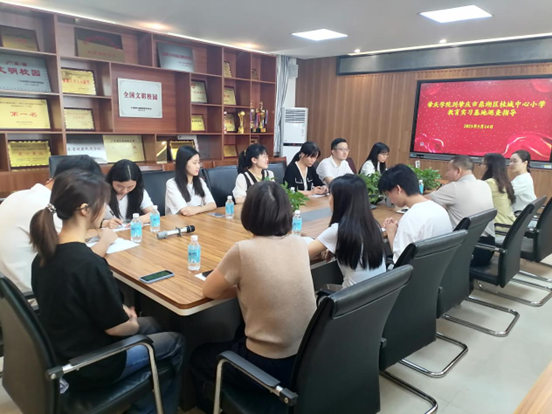 杜志欣、林润燕一行先后前往了鼎湖桂城中心小学、鼎湖中学、宣卿中学、鼎湖区新区中心小学等公司单位。期间,杜志欣、林润燕一行与实习公司负责领导、实习带教老师、实习员工开展座谈会。会上,公司实习员工围绕近两个月以来在教学实习、日常生活等方面进行了汇报。实习公司和带教老师对公司员工的实习表现给予了高度肯定。他们普遍认为实习生具备扎实的基础知识、展现出积极的实习态度和良好的教学技能。实习生工作勤奋、主动性强,热情参与各项任务,并且对待实习工作细致认真,取得了显著的实习成效。