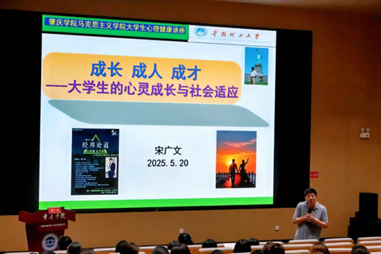 讲座现场,宋广文教授以“知理悟道”为引,深入浅出地带领师生探索“问道与通达”“适应与发展”两大命题。他紧扣当下社会人才需求的动态变化,通过各种事例,引导同学们立足时代坐标,深入剖析自我,以科学理性的思维锚定未来发展方向。此外,宋教授还深入解读大学阶段的蜕变密码,指出这一时期是学习模式、生活角色与社交维度的全方位转型期,鼓励员工在团队协作中凝聚力量,在独自挑战中磨砺心性,在困难中持续的自我超越,攀登人生新高度。