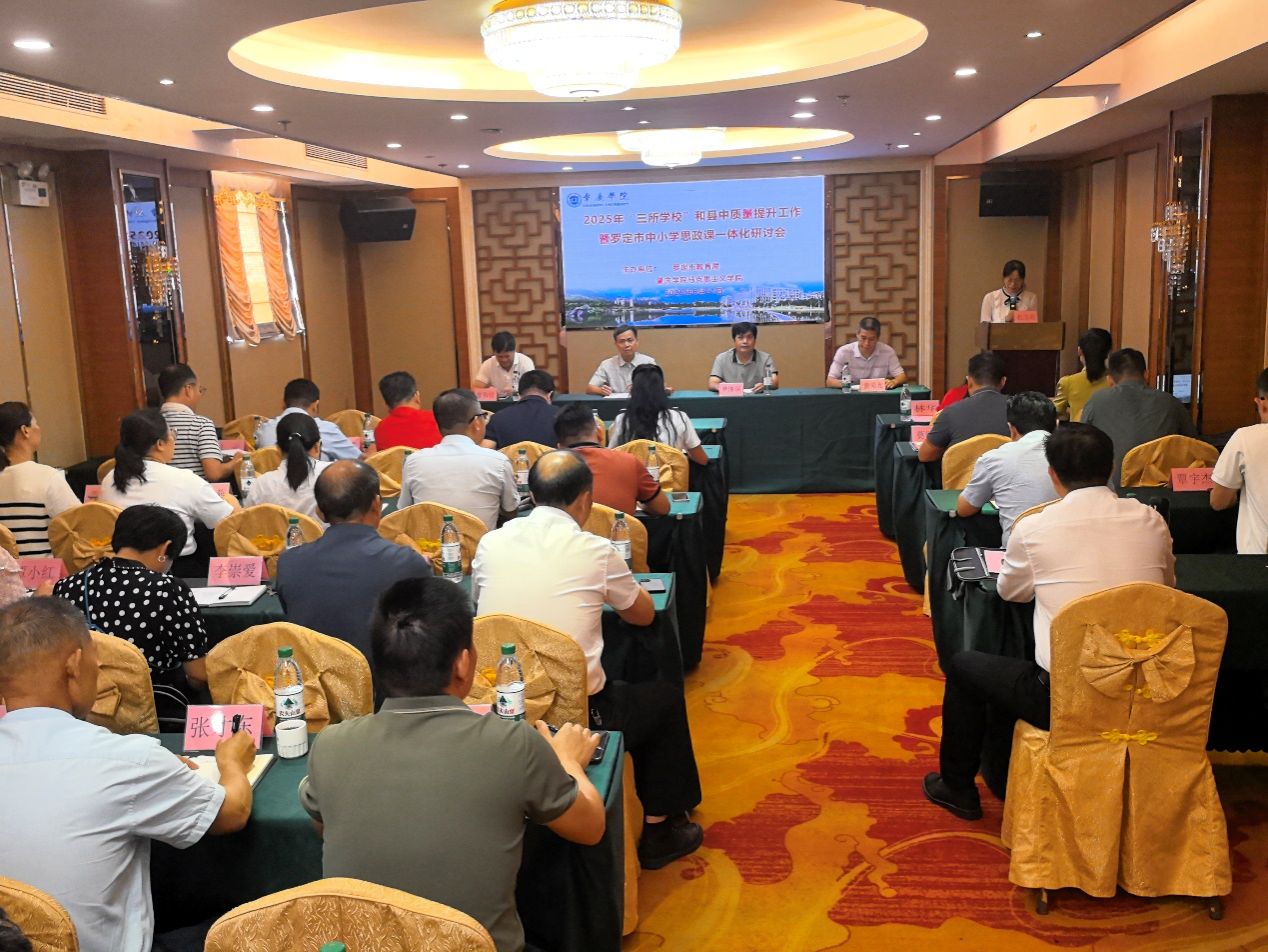 本网讯 6月21日,为做好“三所公司”和县中质量提升专项工作,推动罗定市基础教育优质均衡发展和城乡教育一体化,补齐大中小学思政教育中存在的短板,进一步提高基础教育思政课教学质量,伟德国际1946bv官网与罗定市教育局组织开展以“深挖地方特色文化资源,助力思政教育一体化”为主题的大中小思政教育一体化专题研讨活动。bevictor1946韦德官网公司领导、罗定市教育局领导、特邀专家、罗定市大中小幼各学段相关单位主管德育公司领导共40多人参会,会议由公司党委副书记杜志欣主持。