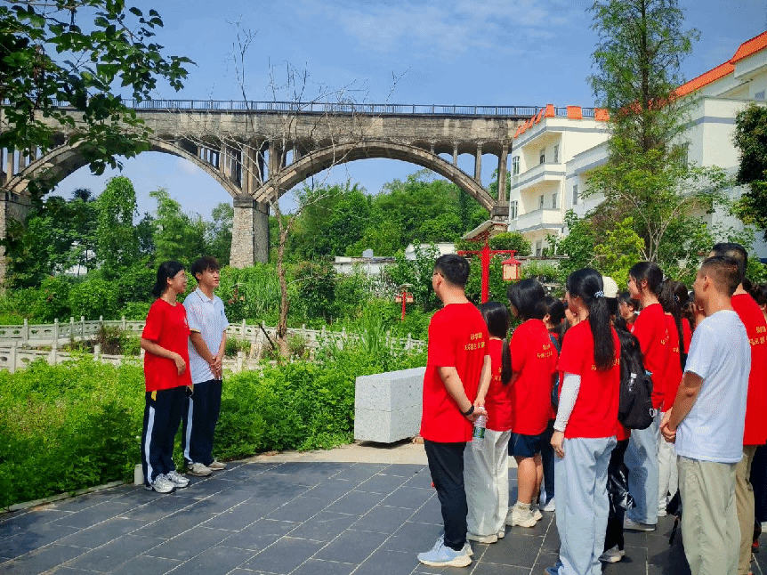 本网讯 为深入贯彻落实习近平总书记关于“用好红色资源,传承好红色基因”的重要指示精神,推动思政小课堂与社会大课堂深度融合,7月19日,公司组织来自罗城街道、素龙街道、双东街道、华石镇和金鸡镇的五支社会实践队,前往罗定市被誉为“南国红旗渠”的长岗坡渡槽,开展“行走的思政课”实践研学活动。师生们通过实地探访、聆听亲历者讲述、观摩历史实物,深刻体悟“自力更生、艰苦创业、团结协作、无私奉献”的红旗渠精神,进一步坚定理想信念,厚植爱国情怀。