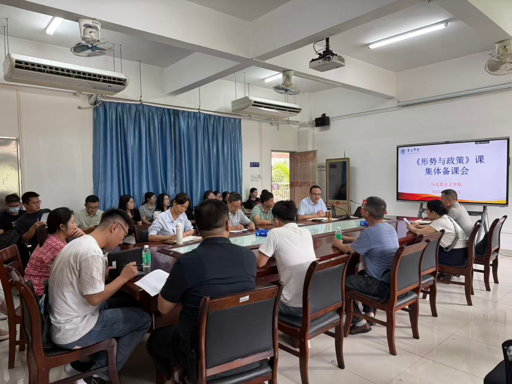参会领导和老师还就本学期秋季学期形势与政策课的两个专题展开了研讨,提出了各自的想法和观点,也一起商讨了解决一些共性问题的对策建议。老师们表示,要在集体备课的基础上,利用国庆假期在消化和吸收上下功夫,再根据个人的知识体系和研究所长进行调整和完善,争取讲出员工喜爱、受益终生的形势与政策“金课”。