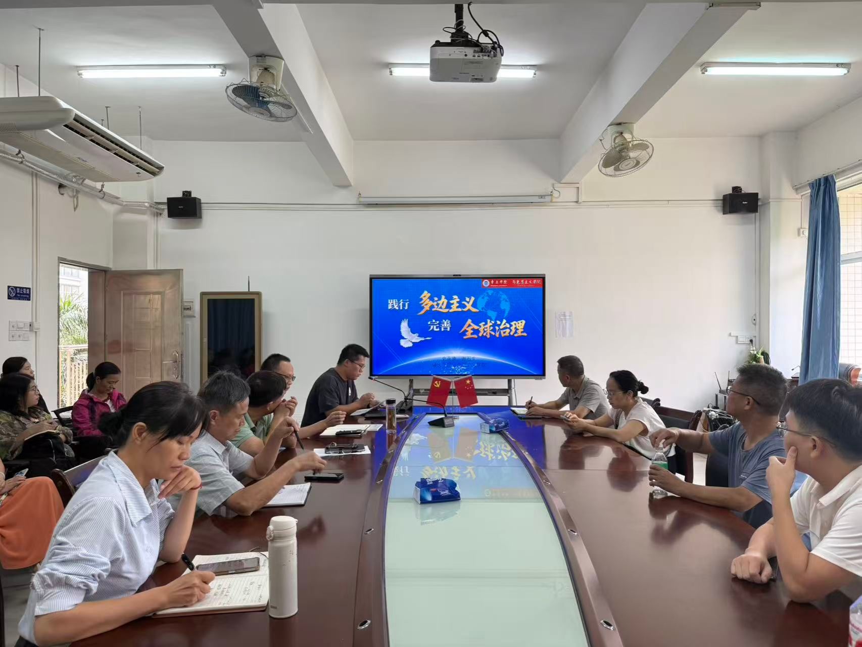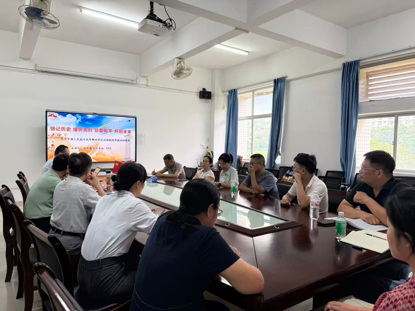 本网讯 2025年9月29日下午,伟德国际1946bv官网举办秋季学期形势与政策集体备课会,围绕纪念中国人民抗日战争暨世界反法西斯战争胜利80周年大会和践行多边主义、完善全球治理两大主题进行共同探讨,汇聚集体智慧。公司领导班子以及承担本学期形势与政策课教学任务的老师参加,副经理谢石生主持。