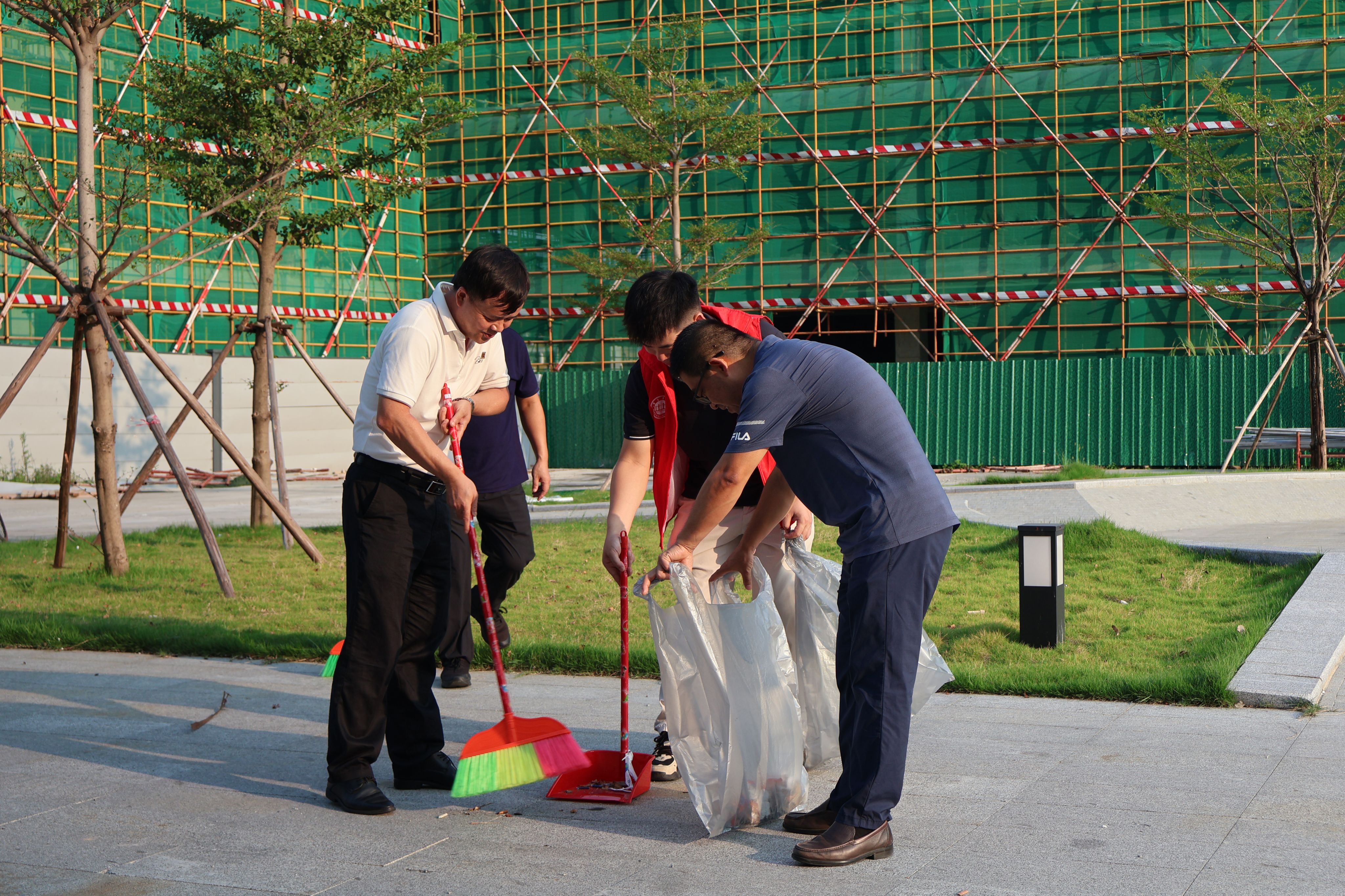 随后,公司师生代表在公司党委书记侯玉基和经理曹和修的带领下,在校园网格责任区域内开展了全面的卫生清理行动。谢冠华书记与公司师生一同参与到卫生整治行动中,以实际行动为师生们营造干净、安全的校园环境,也进一步激发了大家参与爱国卫生工作的积极性主动性。活动现场分工明确,有效协作,重点对区域内生活垃圾、建筑垃圾进行分类清运,对杂草枯枝进行集中清理,彻底清理了卫生盲区与死角。活动后,师生们纷纷表示后续将在公司公司的指导和带领下,持续参与网格责任区域、员工宿舍以及办公场所等场域的卫生维护,以实际行动助力打造整洁有序的校园环境,守护公司师生的生命健康安全。