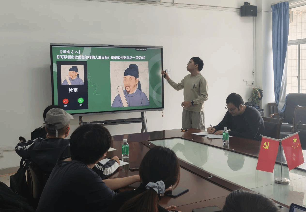 在模拟授课环节,2024级学科教学(思政)专业研究生张文苑和吴柏聪分别进行了教学展示。张文苑以八年级上册《认识国家安全》为题,巧妙运用美国国家安全局攻击中国国家授时中心的真实案例,借助AI课件创设情境,通过议题式教学引导员工深入理解总体国家安全观。吴柏聪则以七年级上册《树立正确的人生目标》为内容,从杜甫的志向切入,结合航天员桂海潮的追梦故事,利用AI互动功能组织小组辩论,探讨个人理想与国家发展的统一关系。两位同学的展示生动体现了技术对课堂互动性、情境创设与思维启发的增强作用。