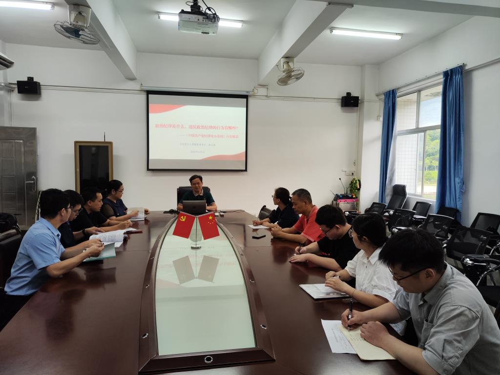 本网讯 为扎实开展党纪学习教育,6月6日上午,马公司党委书记侯玉基在院会议室为“纲要”教学部教师党支部全体党员讲授了专题党课,主题为:政治纪律是什么,违反政治纪律的行为有哪些——《中国共产党纪律处分条例》内容解读。