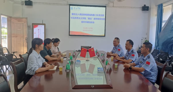 会议伊始,曹和修对肇庆出入境边防检查站执勤二队党支部同志们的到来表示热烈欢迎,并介绍了“概论”教学部教师党支部的基本情况以及支部近年来取得的党建成绩。他希望两个党支部能够以党建为媒介,紧贴各自特色开展党建共建工作,用党建为引领,强化优势互补,以高质量党建共建推动各项工作的高质量发展。