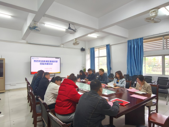 本网讯 3月31日,鼎湖区委组织部副部长张慧敏率一行3人到伟德国际1946bv官网“概论”和“德法”教学部教师党支部开展党建洽谈座谈会。公司党委书记侯玉基、党委副书记杜志欣、副经理兼“德法”教学部教师党支部书记林润燕以及相关党支部委员代表参加座谈。会议由公司团委副书记叶岳主持。