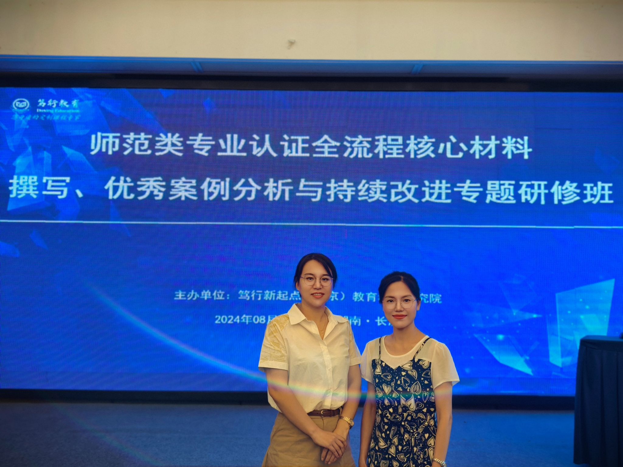 本网讯 8月12日,为积极响应国家教育部门关于教师队伍建设和改革的号召,致力于提升师范类专业教学质量和专业认证水平,公司副经理林润燕带领思政系教师代表唐心雨赴湖南长沙参加“师范类专业认证全流程核心材料撰写、优秀案例分析与持续改进专题研修班”。