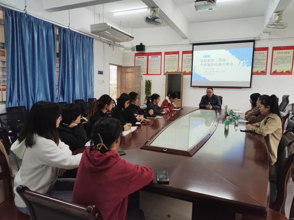 会上,谢石生副经理逐一了解了同学们的报考专业、目标院校、初试成绩情况,对同学们提出了三点建议:一是增强信心,不畏艰难险阻;二是做好准备,保障正常发挥;三是掌握技巧,提升应试能力。接着,三位学科教学(思政)硕士研究生同学分别从专业知识、仪容仪表、心态管理等三大板块,给同学们分享了宝贵经验,并在英文表达、语言组织、情绪调节、网络调剂、学术热点等方面,给同学们提供了细致指导,进行了交流互动。陈炜琪老师则从增强练习、搜集信息、虚心求教、完善细节等方面给同学们提出了建议和要求。