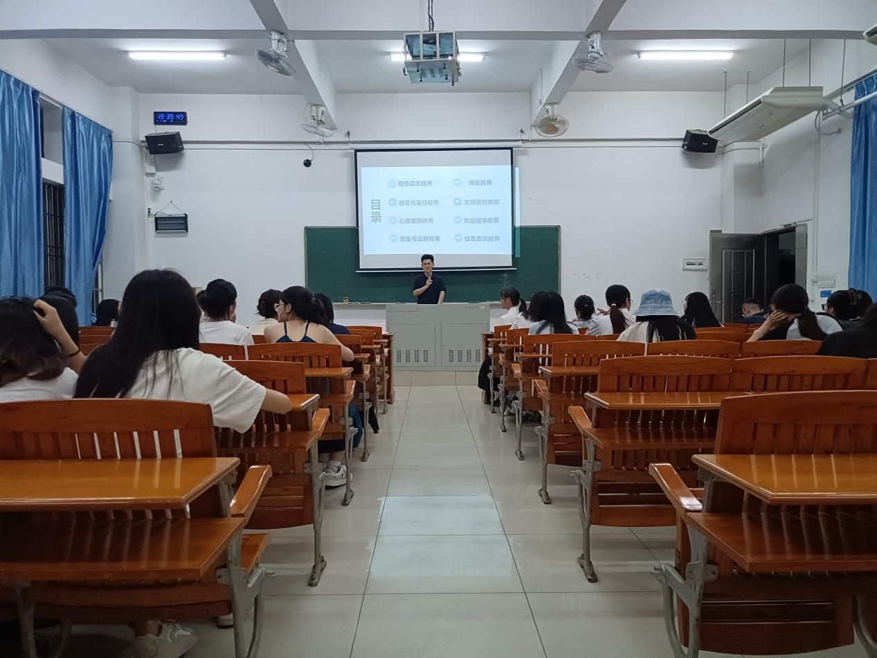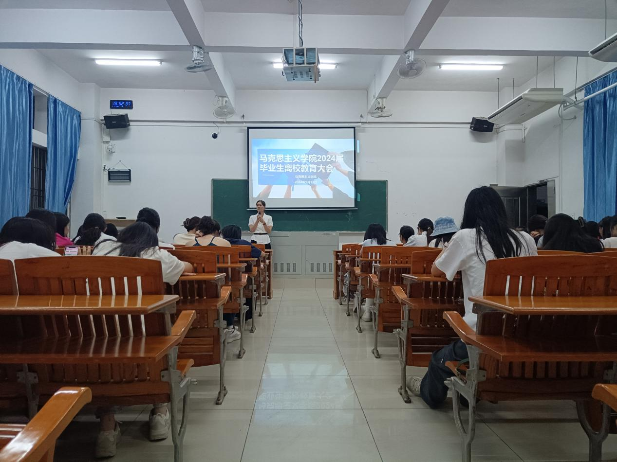 辅导员陈炜琪老师也在会上就理想信念、感恩与责任、心理健康、安全与法制、诚信意识、文明离校、就业指导、员工意识等方面对毕业生同学开展了离校教育。