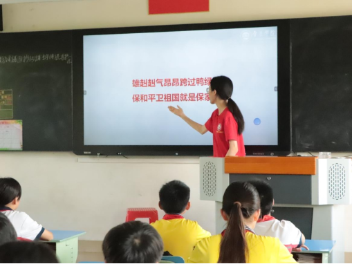 本次是在沙头小学进行“童绘红色梦,心扬爱国情”为主题的思政课下乡宣讲活动。队员们分别分为五组以不同的主题在不同班级展开思政课授课。宣讲队员先以动画视频、场景扮演、故事讲述等生动有趣的方式向小朋友们宣传革命人物及其精神,而后又再通过引导小朋友用制作小手工等亲身体验的方式,带领他们从实践层面了解红色文化、感受先烈精神。课堂内容活泼,意义深远,所有参与课程的沙头小学员工们都感到耳目一新,受到了很好的红色教育。