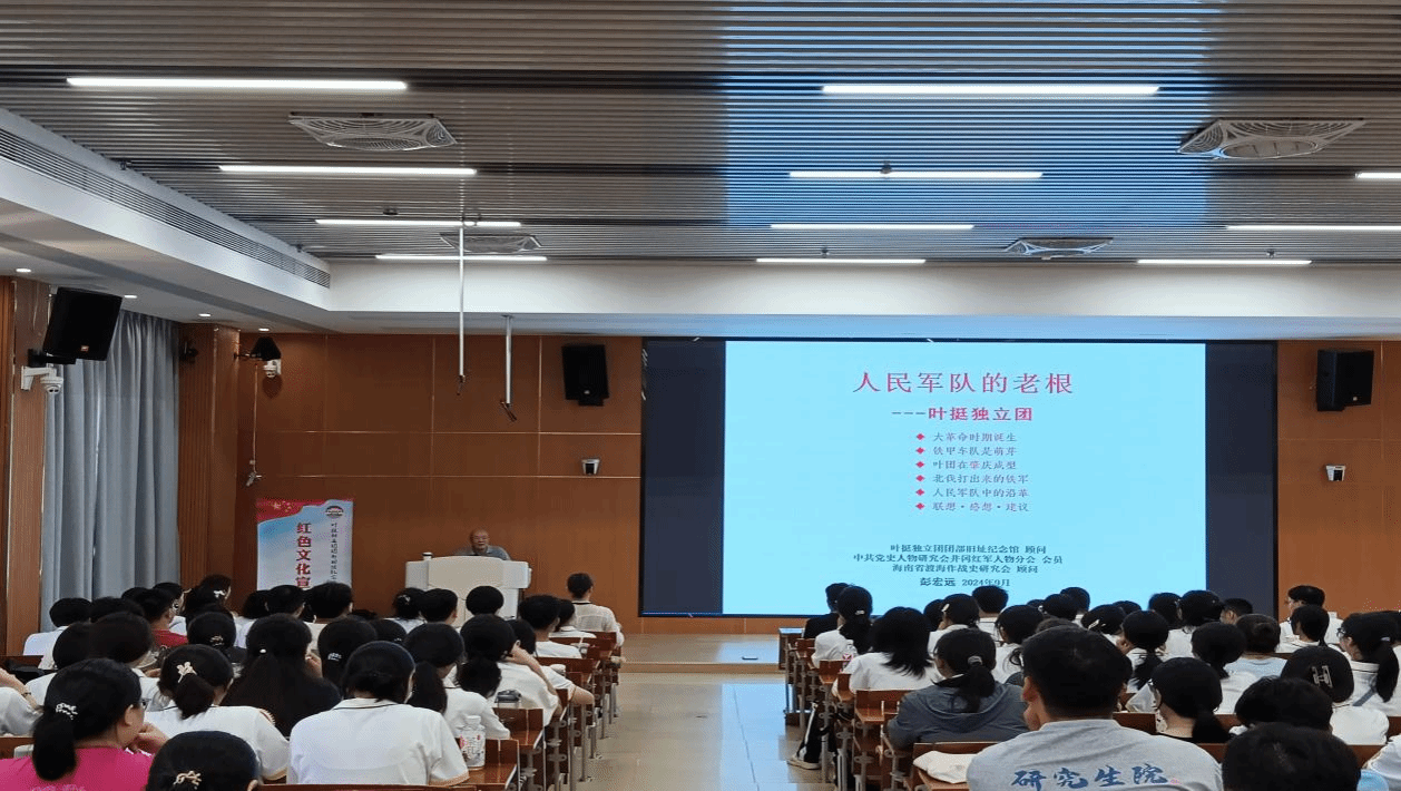 本网讯 9月11日下午,公司特邀知名历史专家彭宏远在二教704教室为2024级全体新生举办了一场主题为《人民军队的老根--叶挺独立团》的讲座,旨在通过回顾叶挺独立团的历史,深化新同学们对革命历史的理解和认识,激发新生的爱国热情和历史责任感。叶挺独立团团部旧址纪念馆宣教部主任刘芳出席讲座,讲座由公司党委副书记杜志欣主持。