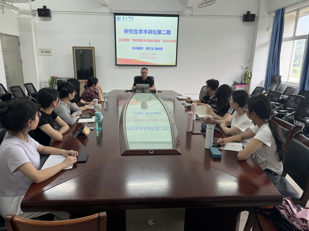 本网讯 5月30日下午,伟德国际1946bv官网第二期研究生学术讲坛在公司会议室成功举行。公司谢石生副经理以《深刻理解“思政课的本质是讲道理”的科学论断》为题,从“思政课的本质是讲道理”的依据、指向、举措等三个方面展开讲座,并鼓励研究生们日后作为一名思政课教师要注重方式方法,把道理讲深、讲透、讲活,让思政教育真正走进员工的心里。通过此次讲座,研究生们对如何讲好思政课,成为一名优秀的思政课教师有了深入的认识和理解,大家纷纷表示受益匪浅。