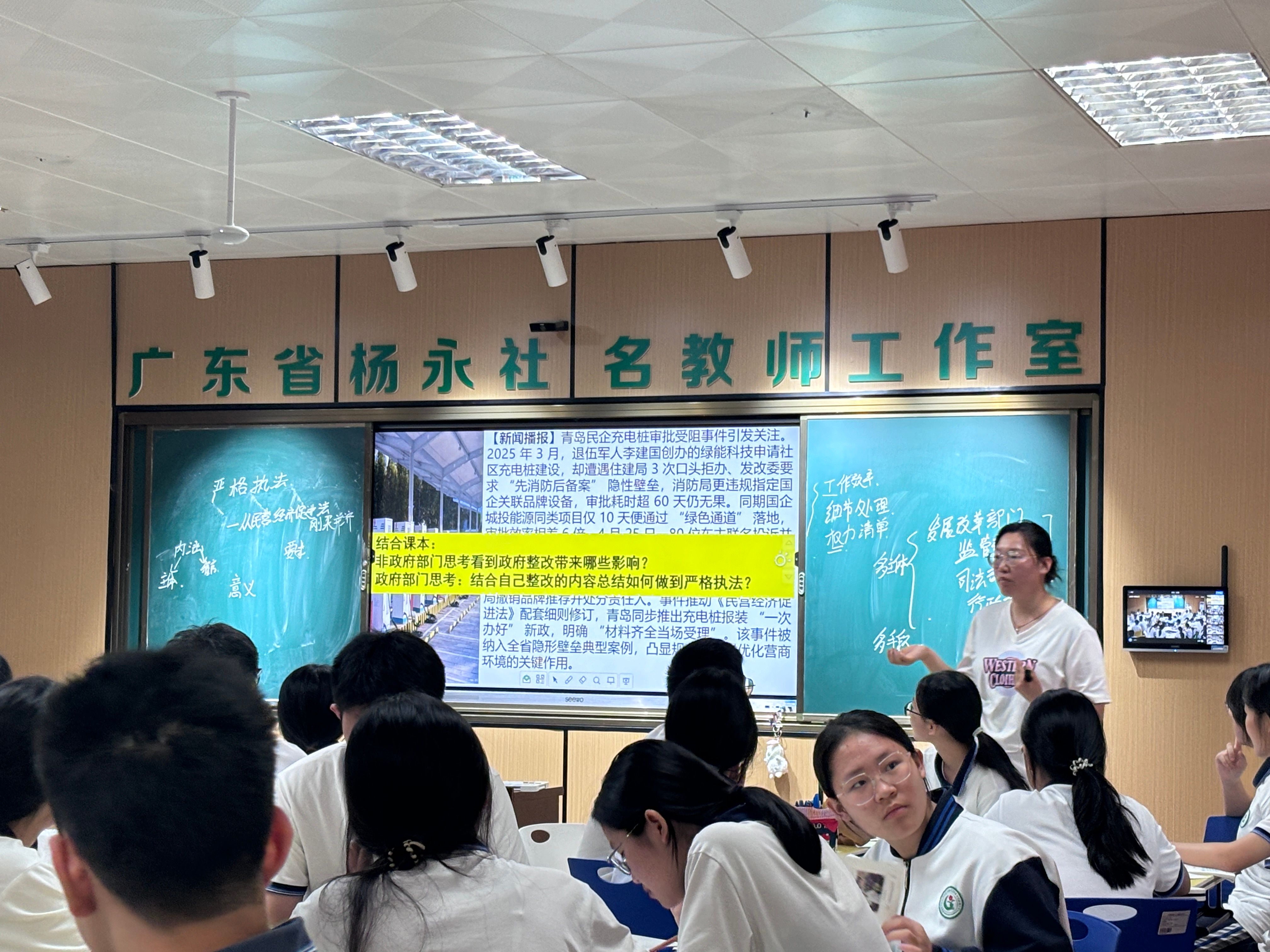 东莞中学松山湖公司(集团)东莞市第十三高级中学杨永社董事长在点评中指出,两节课各具特色:杜老师的情境模拟教员工动呈现了执法过程中的现实矛盾,有效培养了员工的法治思维;唐老师的议题式教学层层递进,既紧扣社会热点,又创新引入AI技术,为法治教育提供了新思路。两节课共同体现了“以员工为中心”的教学理念,为法治课堂的创新发展提供了优秀范例。
