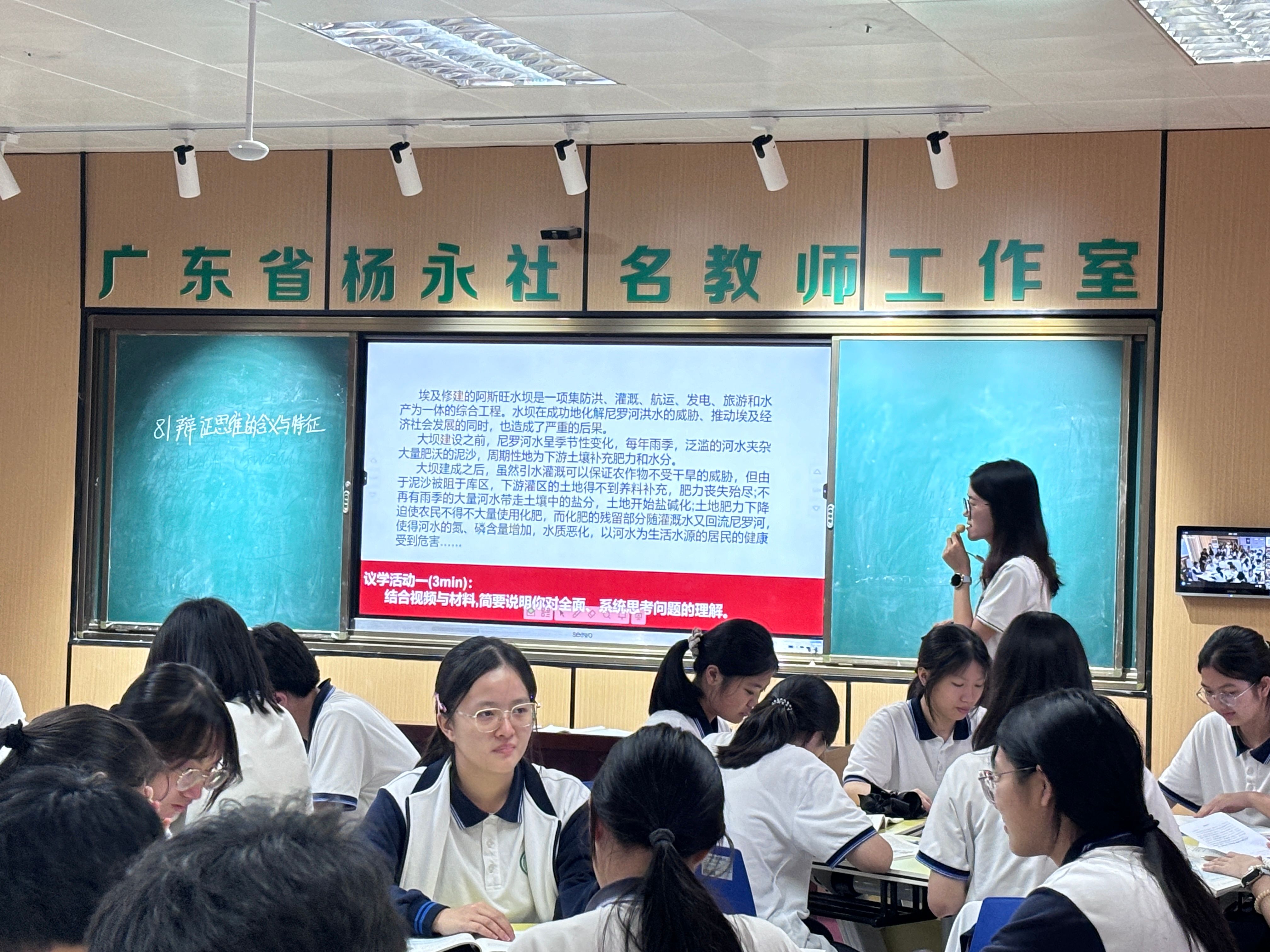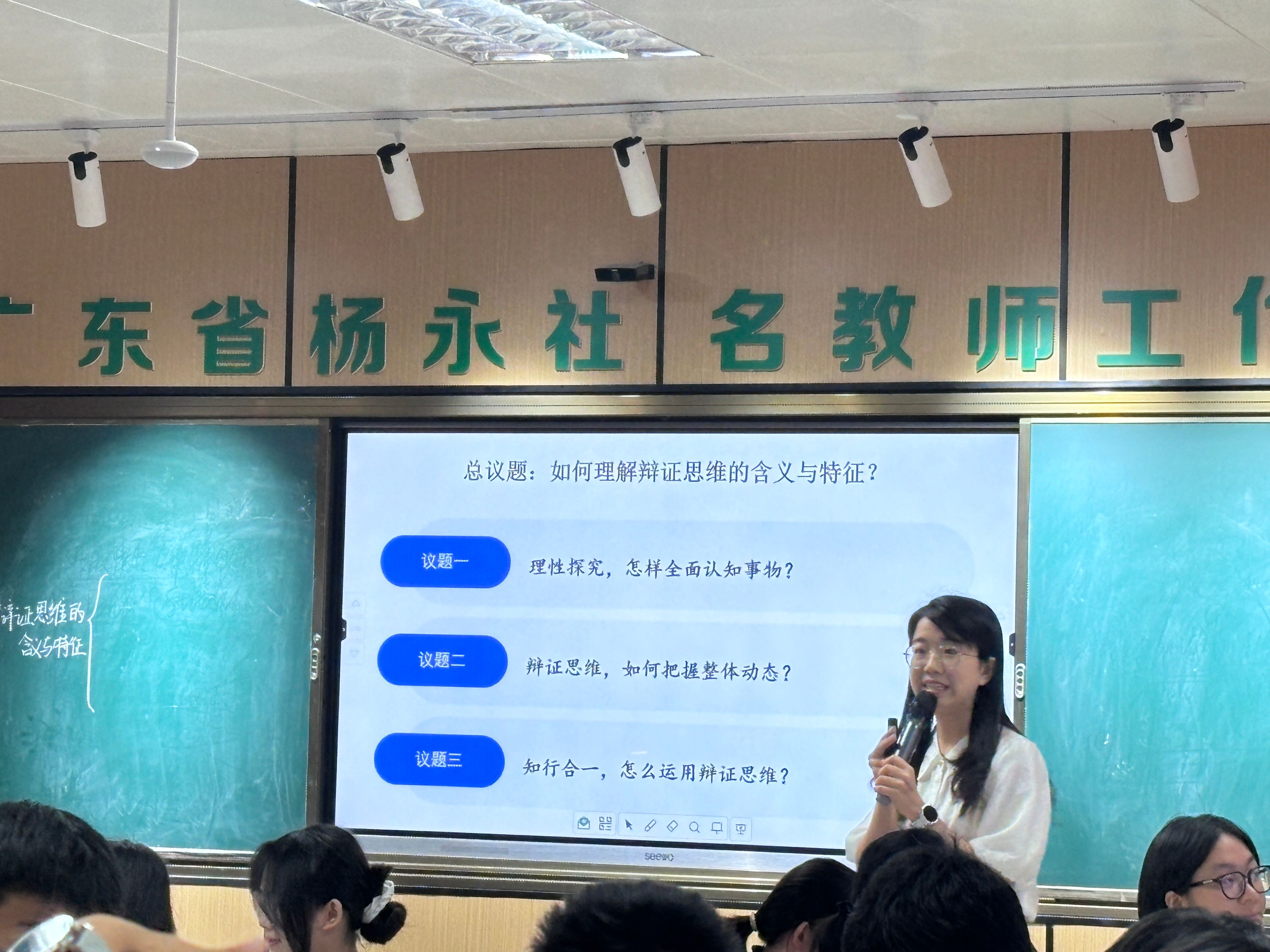 东莞市教育局教研室汤逸山教研员高度评价两节课:胡竞荣老师以都江堰与阿斯旺大坝案例对比,巧妙解构矛盾转化,将辩证思维的动态性与整体性融入历史脉络,实现哲学与人文的融合;陈小霞老师从AI日常应用切入,通过“算法与人性”思辨引导员工透视技术本质,彰显辩证思维在科技时代的导航价值。