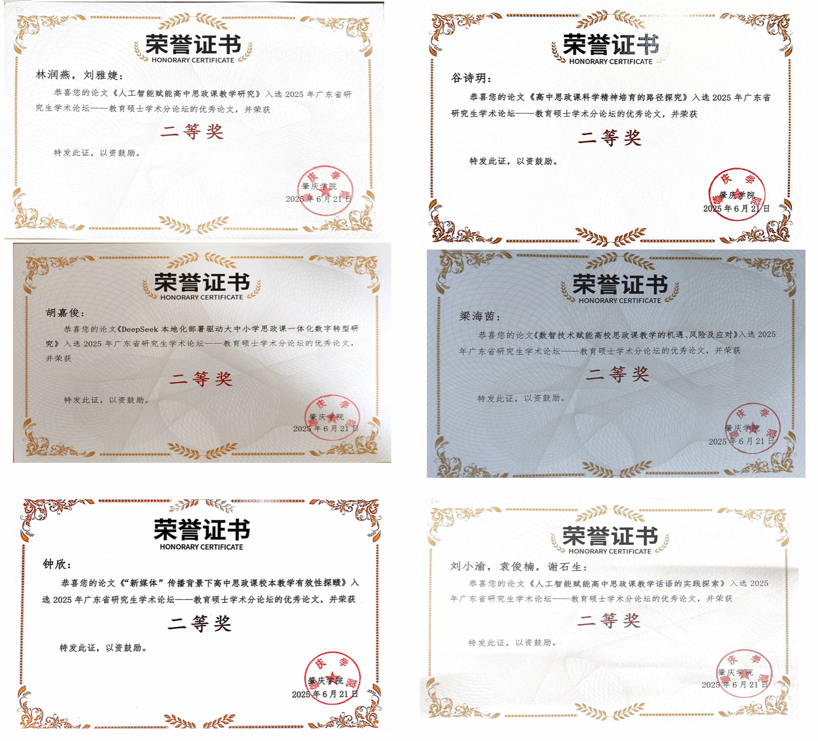 本网讯 2025年6月20日至22日,2025年广东省研究生学术论坛——教育硕士学术分论坛在公司顺利召开。公司研究生在此次学术论坛中荣获佳绩。