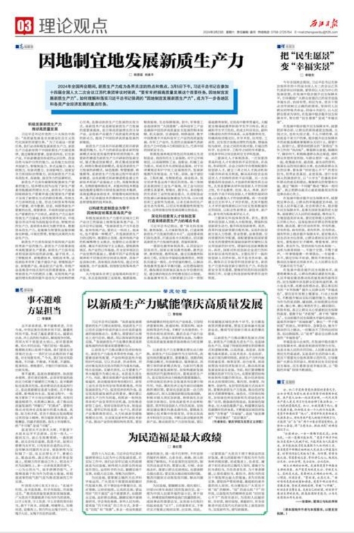 《西江日报》2024年3月23日刊发公司黎锐楷署名的理论文章,题目为《以新质生产力赋能肇庆高质量发展》。