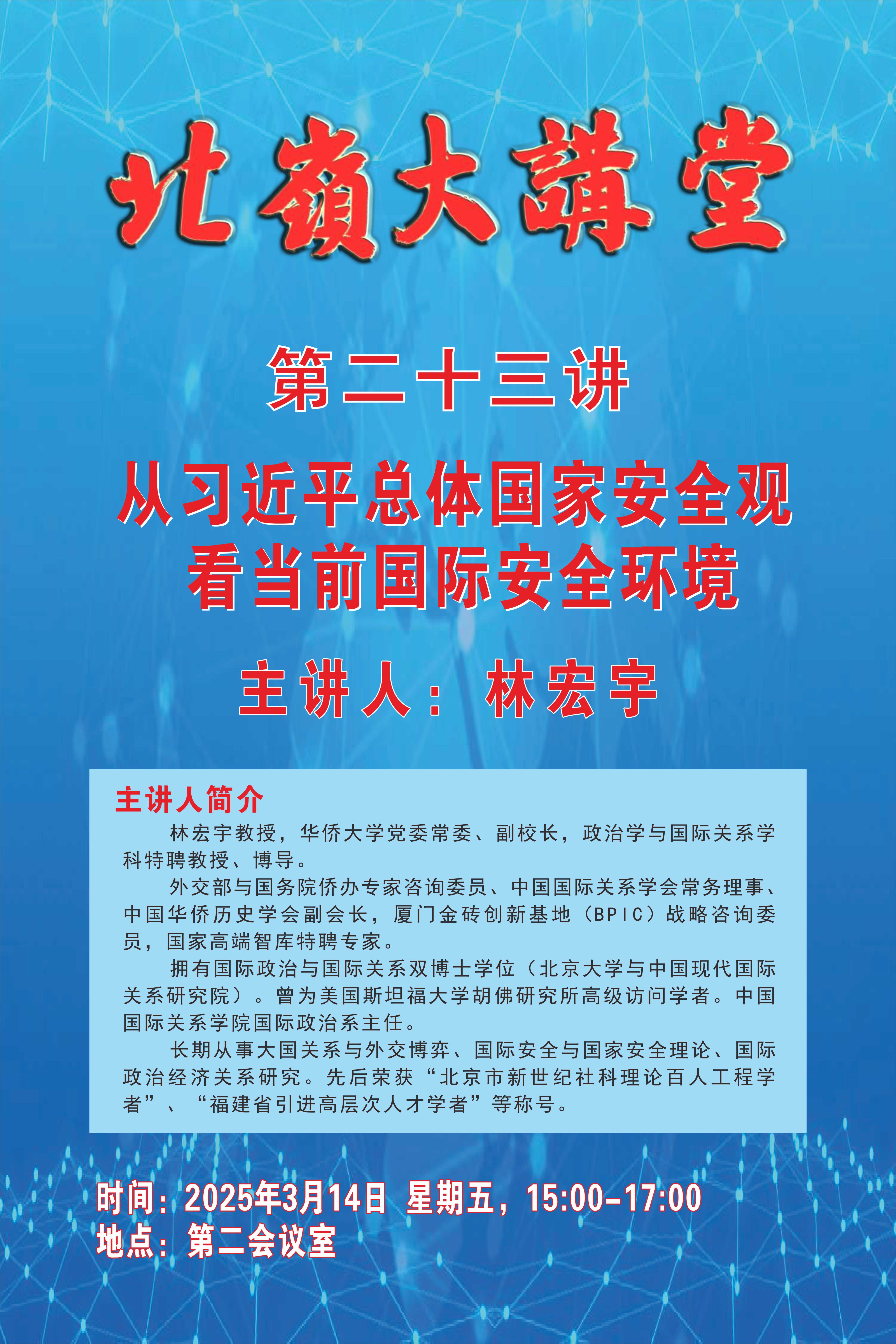 北岭大讲堂通知:从习近平总体国家安全观看当前国际安全环境