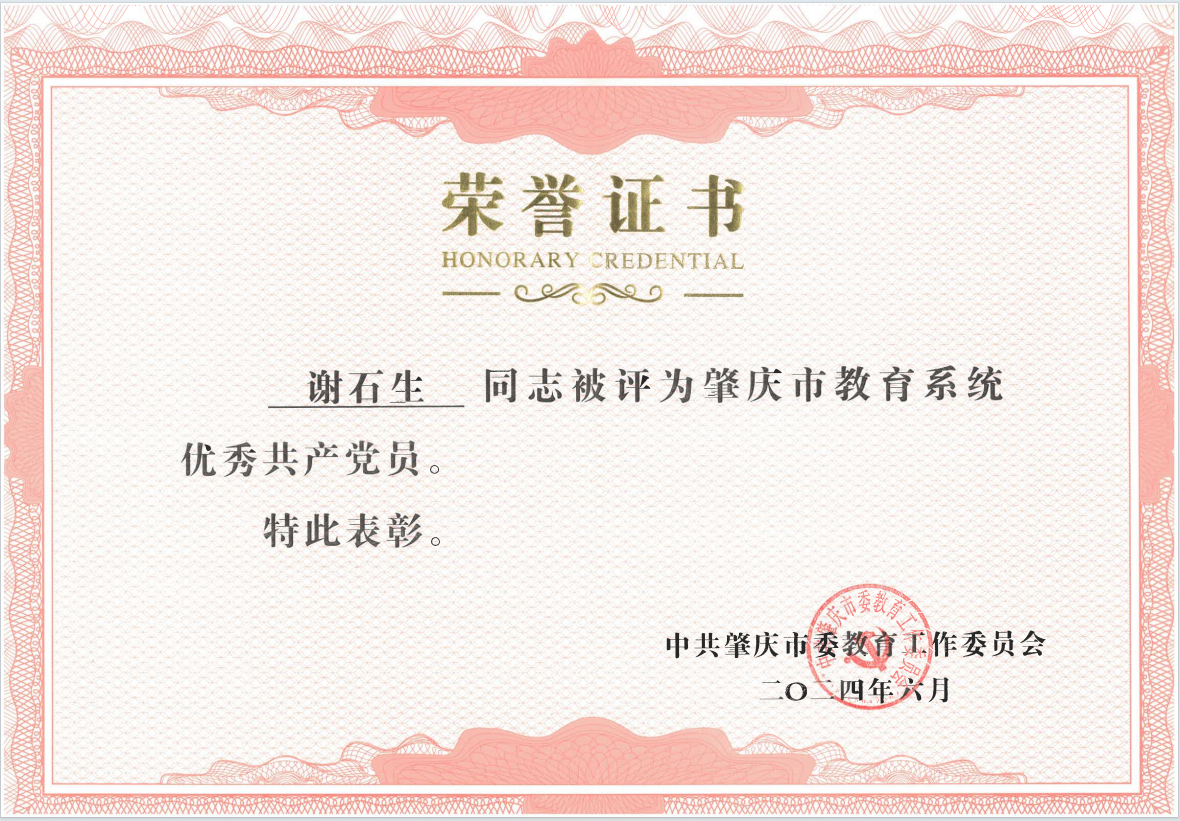 本网讯 在中国共产党成立103周年之际,6月27日,为表彰先进、弘扬正气,激励各级党组织和广大党员奋勇争先、建功立业,推进肇庆高质量发展和现代化建设作出新担当新贡献,肇庆市委发布《中共肇庆市委关于表彰肇庆市优秀共产党员、肇庆市优秀党务工作者和肇庆市先进基层党组织的决定》。公司“概论”教研室教师党支部被授予“肇庆市先进基层党组织”荣誉称号。同时,肇庆市教育系统“两优一先”表彰大会召开,表彰市教育系统优秀共产党员、优秀党务工作者和先进基层党组织,公司谢石生副经理荣获“肇庆市教育系统优秀共产党员称号”。