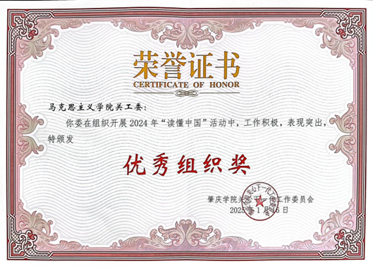 在本次活动中,公司关工委精心组织、积极协调,为师生参与活动提供了有力支持,荣获了校级“优秀组织奖”称号。这一荣誉不仅是对公司关工委工作的高度认可,更是对全院师生积极参与、共同努力的充分肯定,也彰显了公司在文化传承与教育实践中的积极探索。