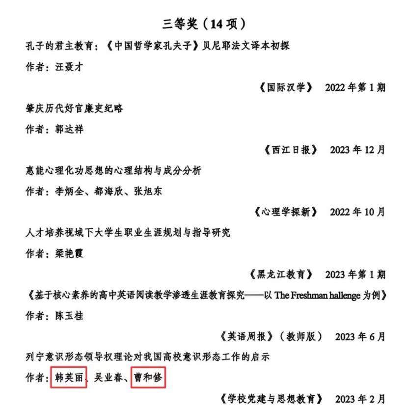 在肇庆市第十七届(2022-2023年度)社会科学优秀成果奖的表彰中,公司教师凭借着深厚的学术造诣和突出的学术研究能力,荣获一、二、三等奖各一项,其中叶枝青老师荣获论文类一等奖,谢石生副经理荣获论文类二等奖,韩英丽老师和曹和修经理荣获论文类三等奖。