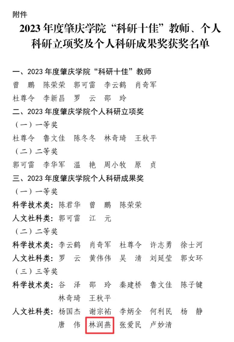 在2023-2024年度bevictor1946韦德官网个人科研成果奖表彰中,林润燕副经理凭借其扎实的专业功底和突出的科研成果,荣获人文社科类三等奖。